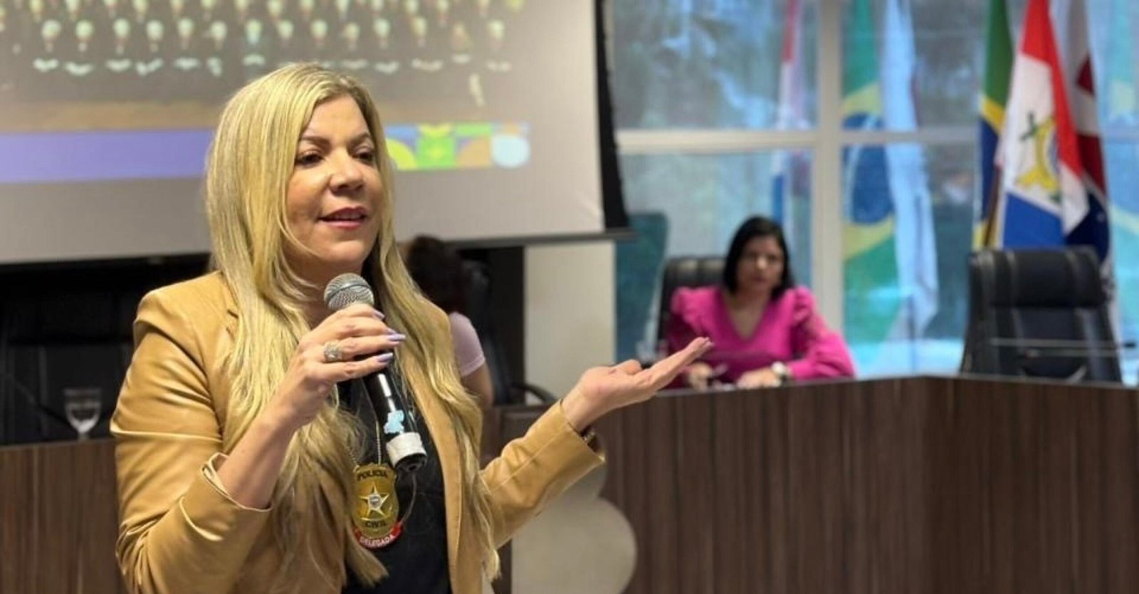 Foto: Assessoria A delegada Ana Luiza Nogueira, coordenadora das Delegacias Especializadas de Atendimento à Mulher (DEAMs), participou nesta terça-feira (12) da Conferência Livre “Voz Feminina...