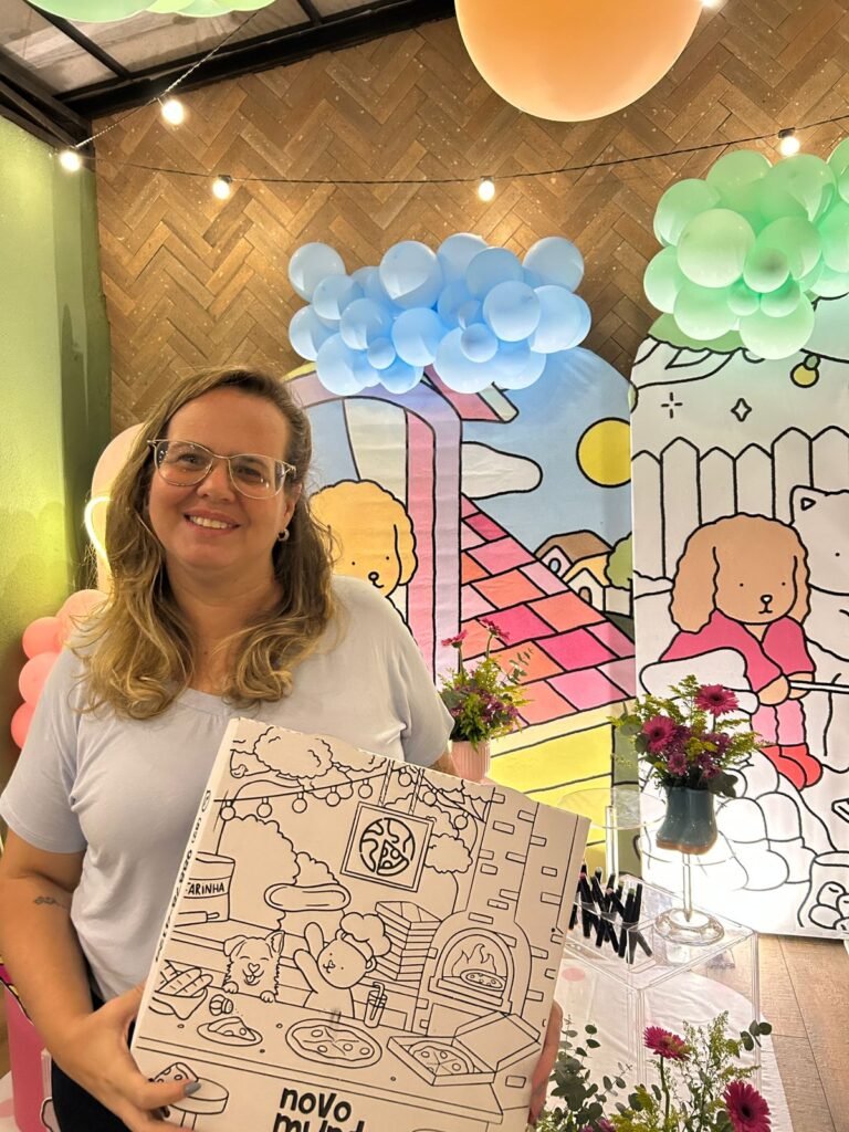 Juliana explica que o projeto da caixa foi pensado justamente para levar esse mesmo sentimento para dentro da pizzaria. “Me faz soltar o celular e me dá um tempo para estar presente para mim mesma. Então, quando pensamos na caixa para o mês das crianças, quis trazer essa ideia para dentro da Novo Mundo Pizzas”, destacou.