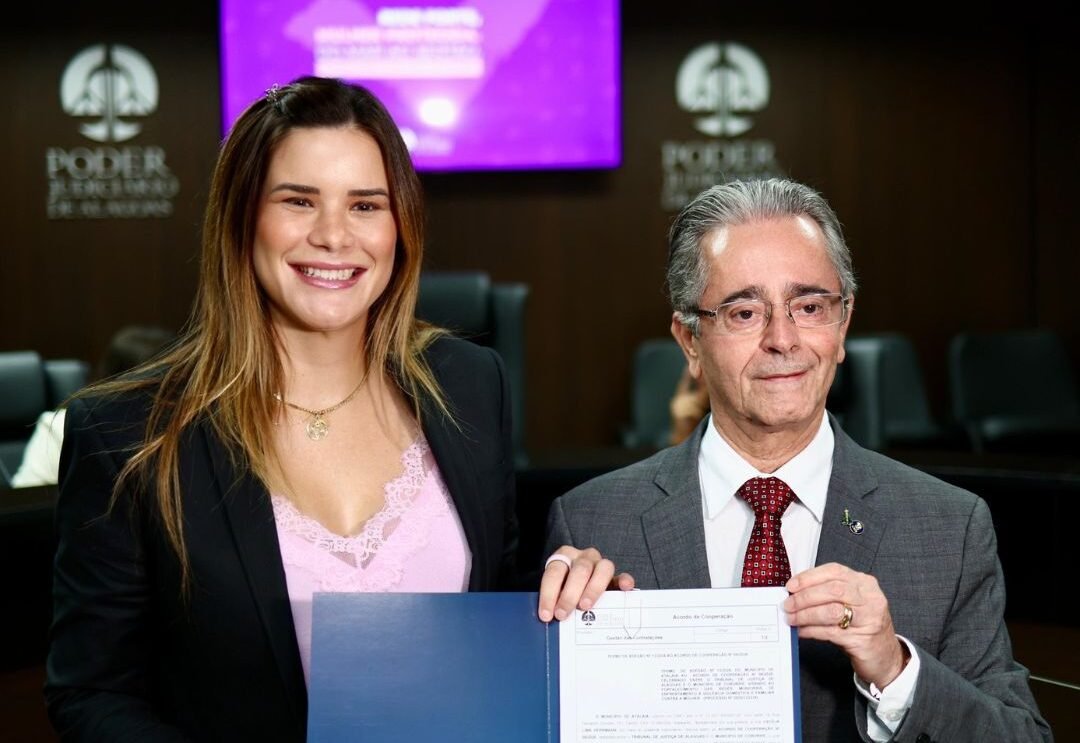 Foto: Assessoria Nesta segunda-feira (2), a prefeita de Atalaia, Ceci (MDB), participou, no Tribunal de Justiça de Alagoas, da assinatura do programa “Rede Forte, Mulher...
