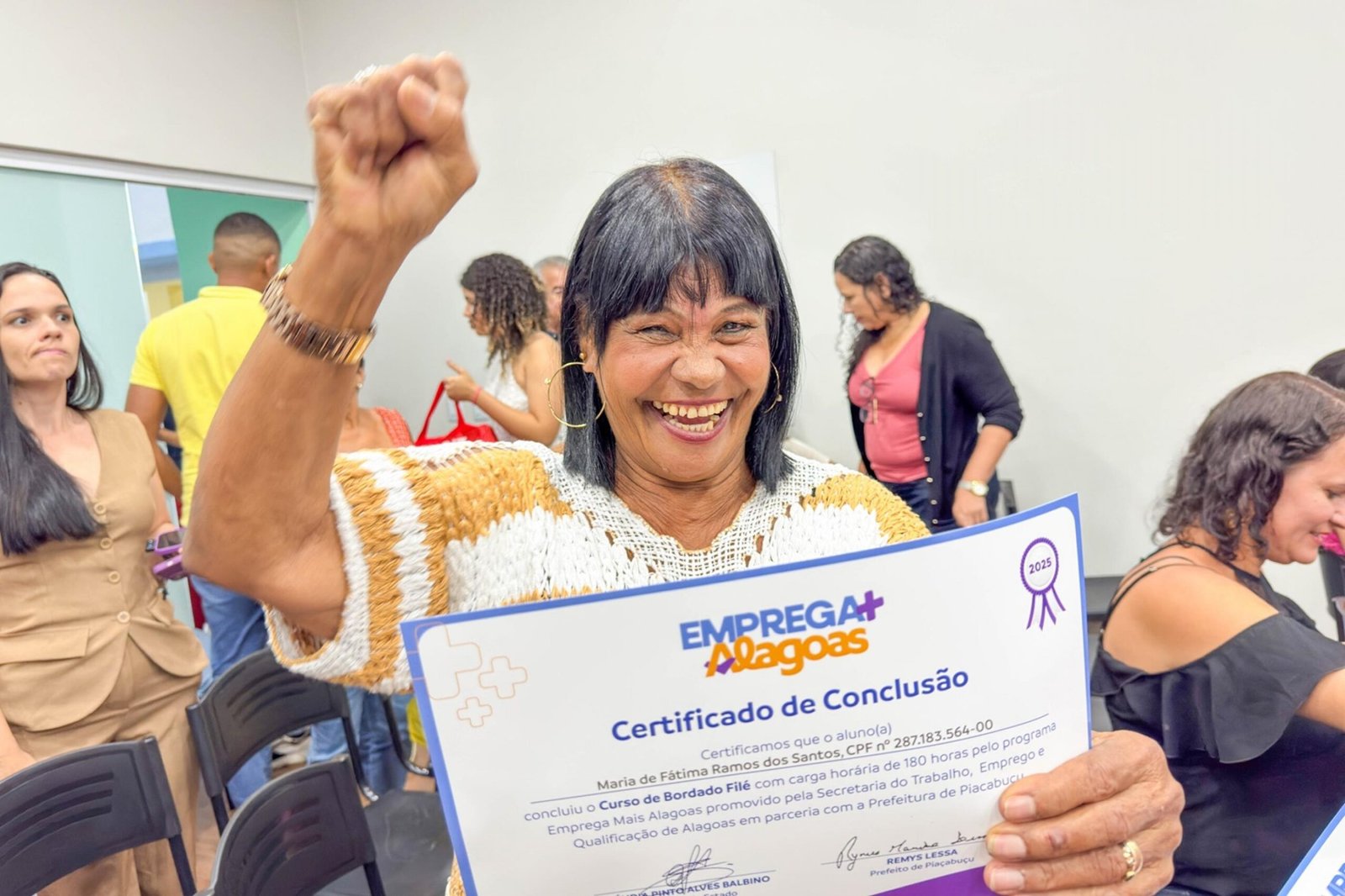 Foto: Assessoria O programa Emprega Mais Alagoas da Secretaria do Trabalho, Emprego e Qualificação (Seteq) concluiu esta semana a primeira turma do curso de Bordado Filé para 24 alunas...